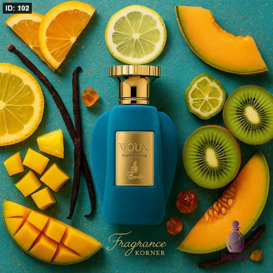 Voux Turquoise PARIS CORNER عطر شرقي - فانيليا للجنسين. Voux Turquoise صدر عام 2024. إفتتاحية العطر البرتقال الصقلي, برغموت كالابريا و الليمون الصقلي; قلب العطر نوتات الفواكه; قاعدة العطر تتكون من فانيليا مدغشقر, العنبر و المسك الأبيض.