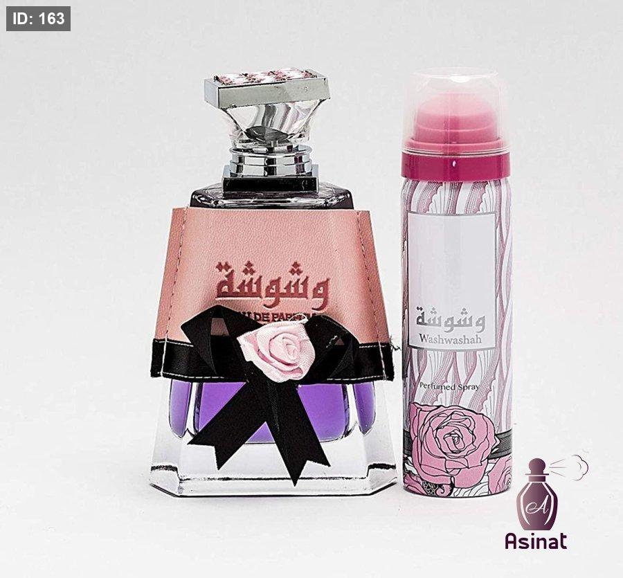Washwasha Lattafa Perfumes عطر شرقي – زهري للنساء . إفتتاحية العطر توت العليق, الفلفل الوردي و البرتقال المر; قلب العطر مسك الروم, أوسمانثوس , الياسمين, زهر البرتقال الفرنسي و النيرولي; قاعدة العطر تتكون من حبوب التونكا, الفانيليا, المسك, البنزوين – الجاوي, أخشاب الكشمير و العنبر.