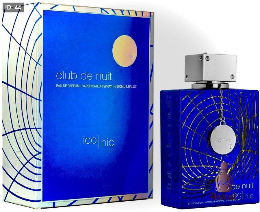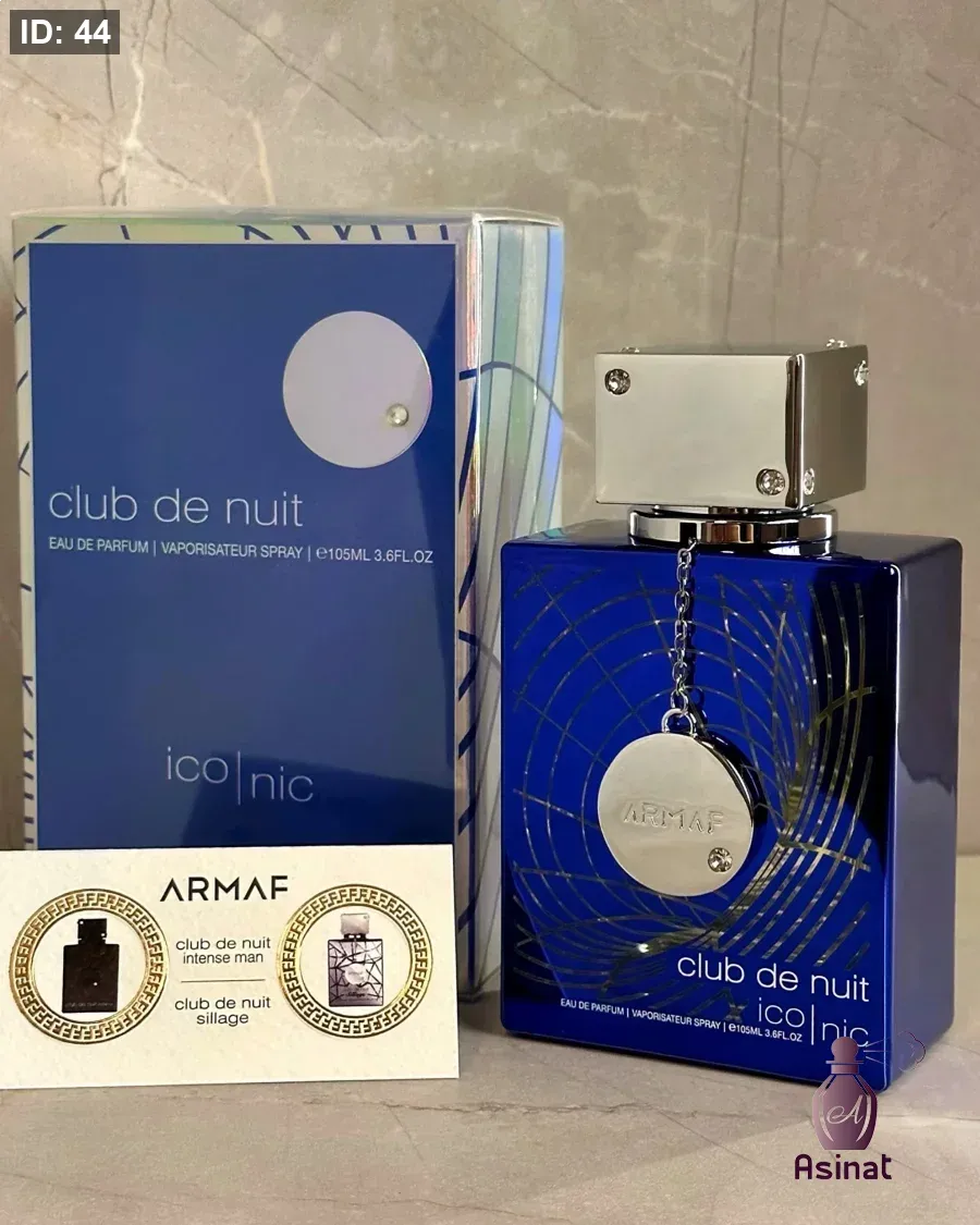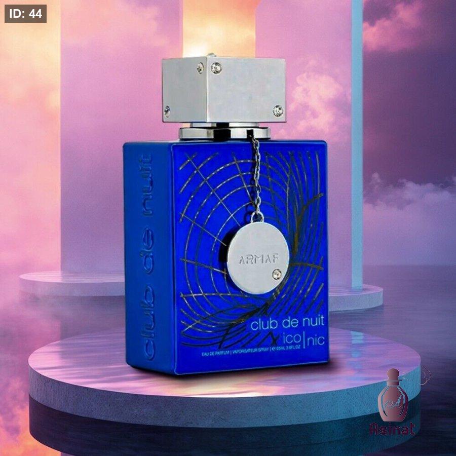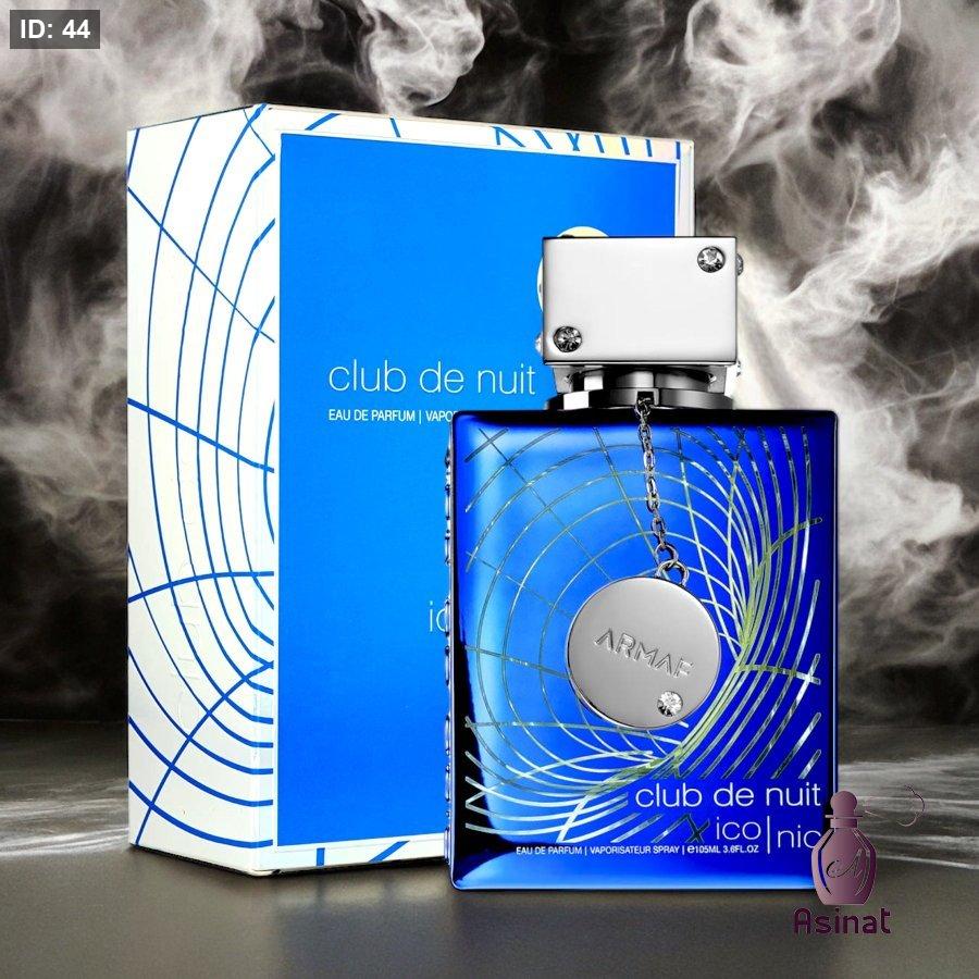 عطر رجالي أرماف كلاب دي نوي بلو أيكونيك بحجم 105 مل برائحة جريب فروت، نعناع، فلفل وردي، ليمون، كزبرة،الزنجبيل، جوزة الطيب، البطيخ، الياسمين ، البخور، العنبر، الأرز، خشب الصندل، الأخشاب، اللابدانوم، الباتشولي